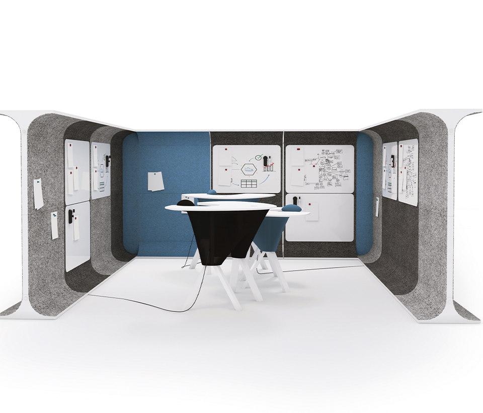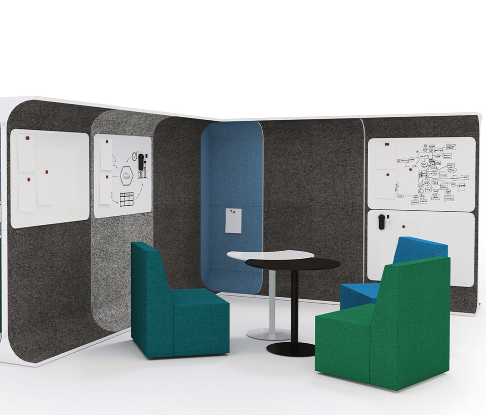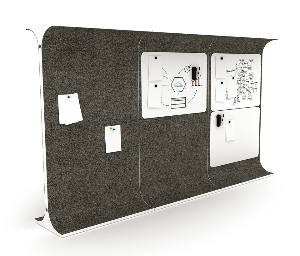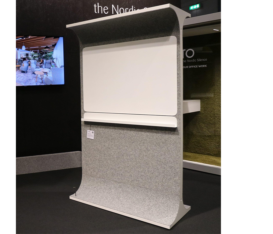 Den mångsidiga STORY WALL är en akustisk och nytänkande rumsavdelare med filt.