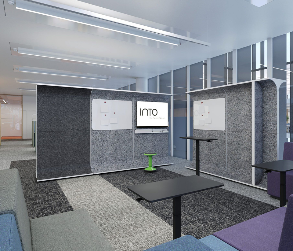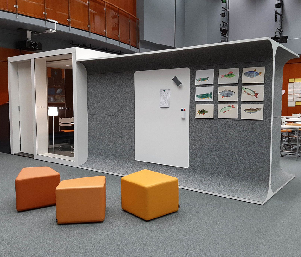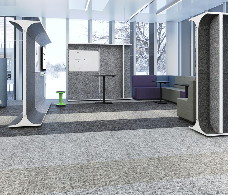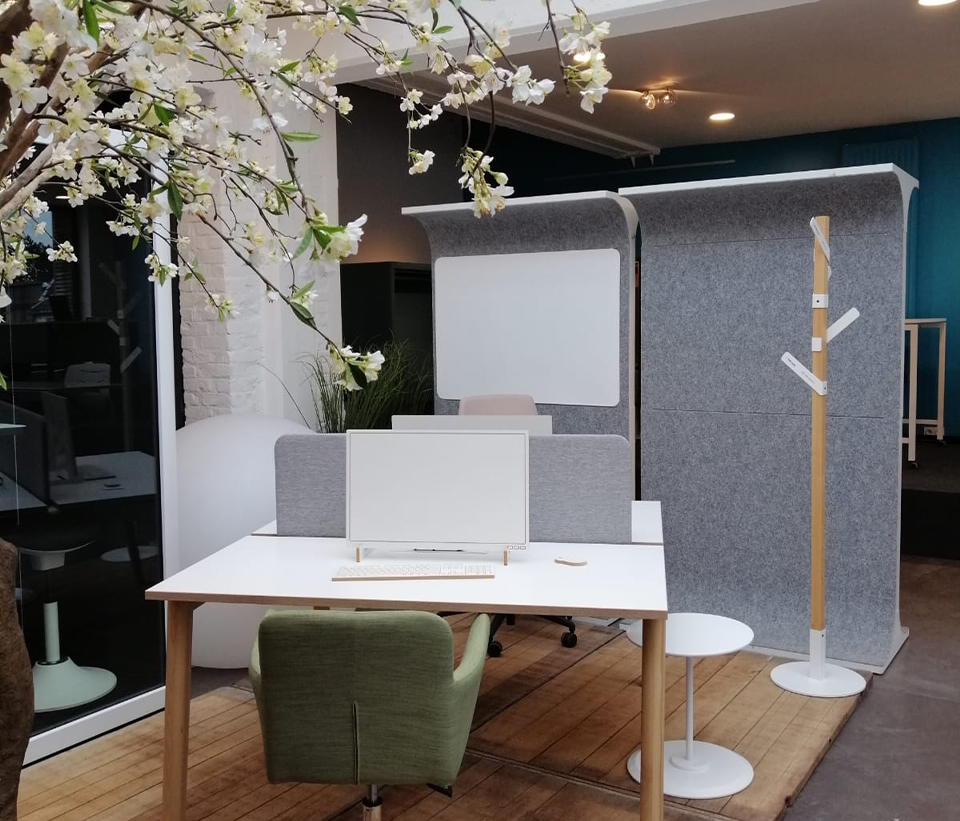 Den mångsidiga STORY WALL är en akustisk och nytänkande rumsavdelare med filt.