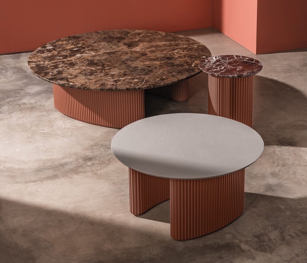 Bolete kaffe-/sidobord, designad av Patricia Urquiola, bjuder på en identitetsskapande form och hög miljöprofil. Med en bas i återvunnen Pure ECO®-termopolymer och en karaktäristisk räfflad yta, tillför bordet både struktur och värme i rummet. Tack vare sin runda design, räddar bordsytan plats i trånga miljöer utan att kompromissa med uttryck och materialval.