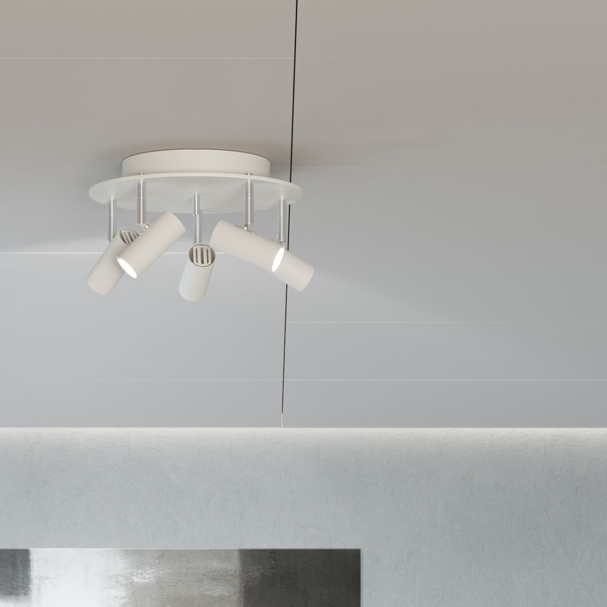Med en diameter på 29 cm har Cato 5-spotlight en kompakt och diskret design som inte tar upp för mycket plats. Den är utrustad med en Gu4 sockel, vilket ger dig flexibilitet när det gäller att välja ljuskälla. Det som gör Cato 5-spotlight särskilt användbar är dess justerbara spotlights. Du kan enkelt rikta ljuset i olika riktningar och skapa olika ljuseffekter i rummet. Detta gör det möjligt att framhäva specifika områden eller objekt, som konstverk, inredningsdetaljer eller arbetsytor.