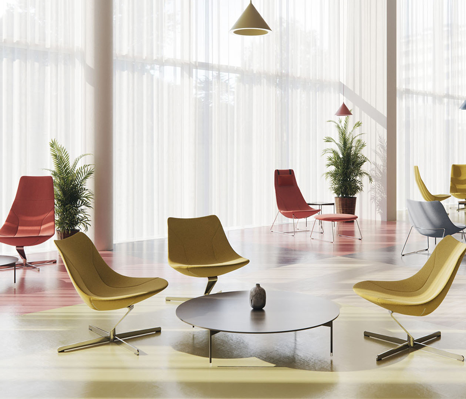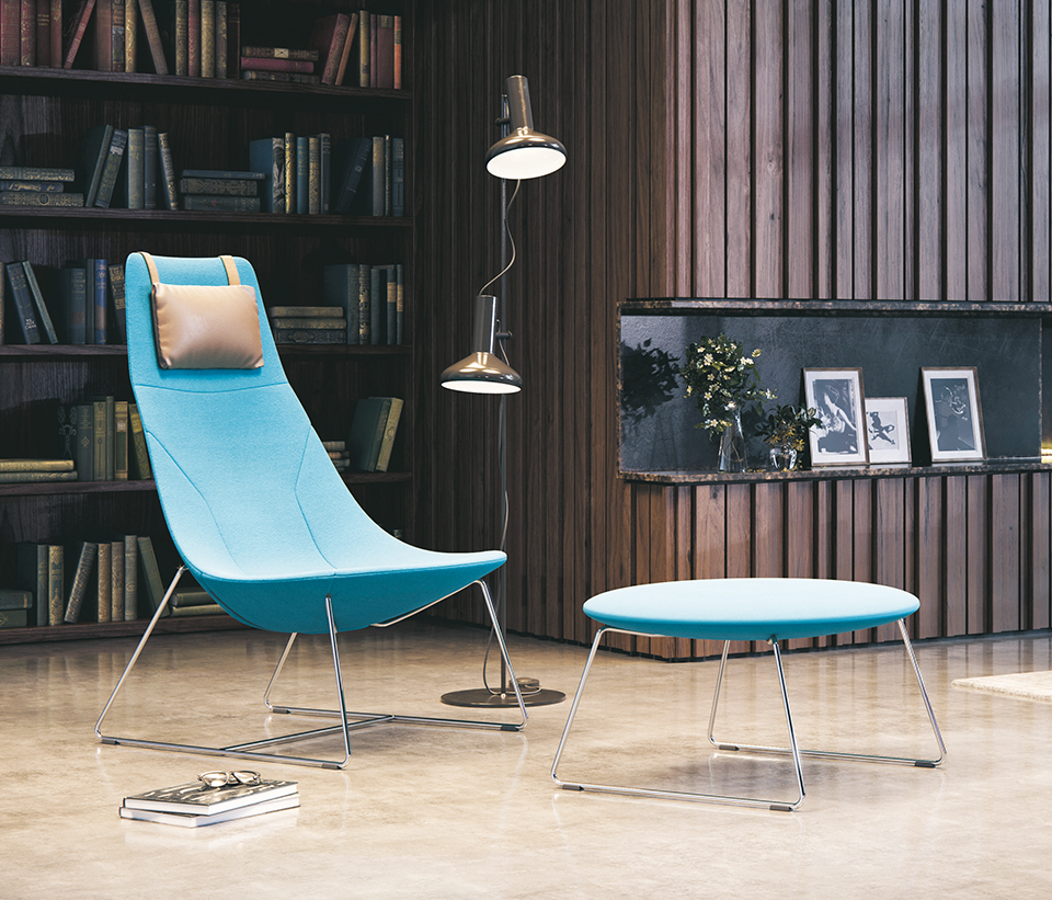 Fåtölj Chic Lounge är en elegant och luftig loungefåtölj med två ryggstöd, flera underreden och exklusiva materialval. Perfekt för lounger, receptioner och sociala ytor.