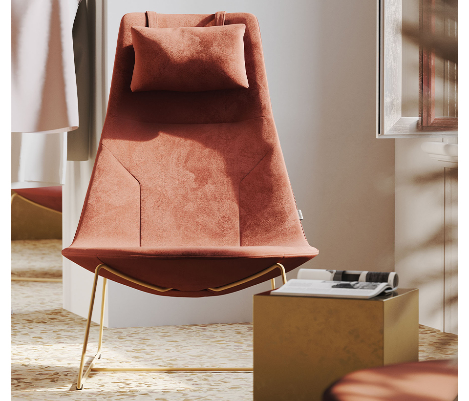Fåtölj Chic Lounge kombinerar en mjuk form med elegant design. Dessutom skapar den luftiga siluetten ett avslappnat uttryck. Eftersom formen är minimalistisk passar fåtöljen i både sociala och lugna miljöer. Därför trivs den lika bra i lounger, receptioner och hotell som i hemmets mer privata rum.