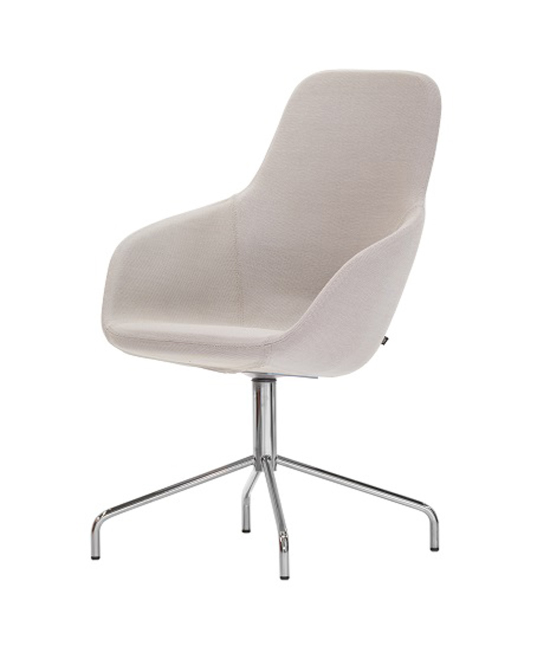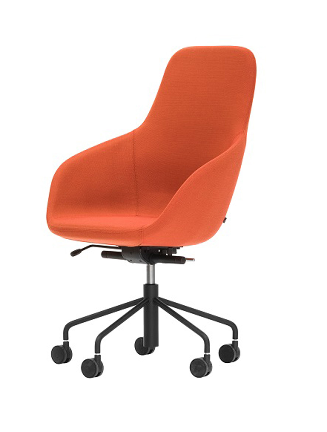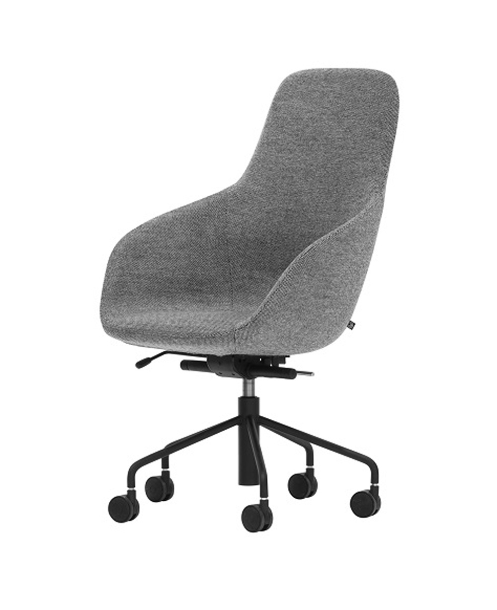 Glove konferens- eller mötesstol i högt eller medium utförande är helklädd och har metallstativ. Formen är omslutande men ändå ledig och ger en mjuk designad image. Bra sittkomfort