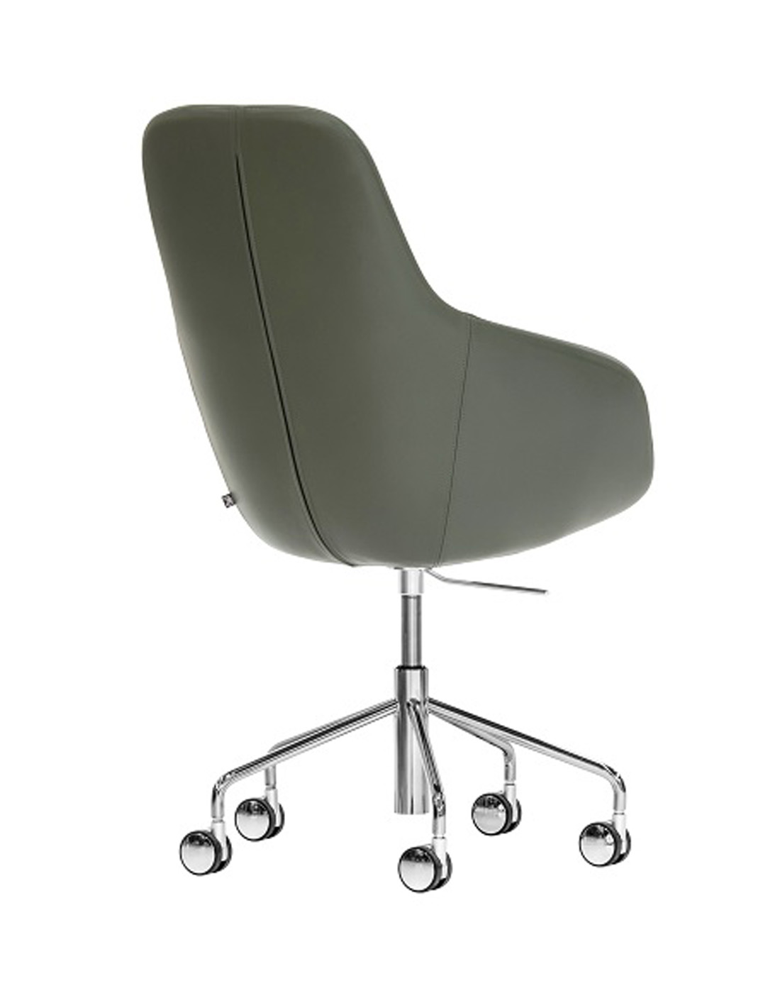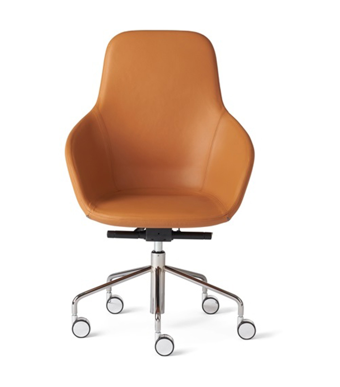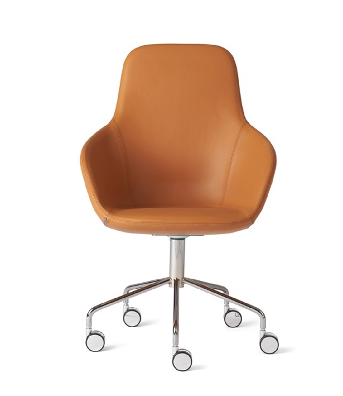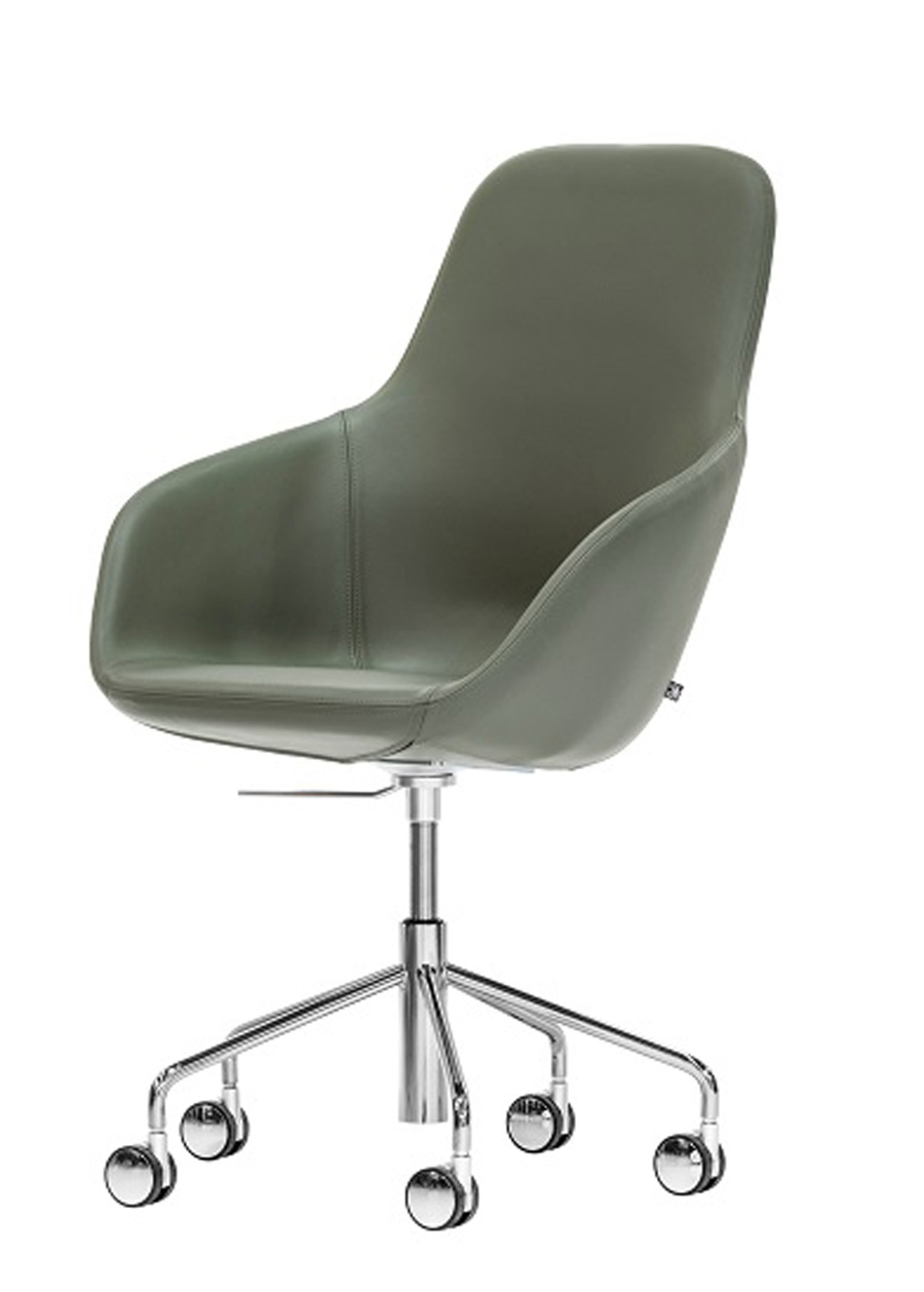 Glove konferens- eller mötesstol i högt eller medium utförande är helklädd och har metallstativ. Formen är omslutande men ändå ledig och ger en mjuk designad image. Bra sittkomfort