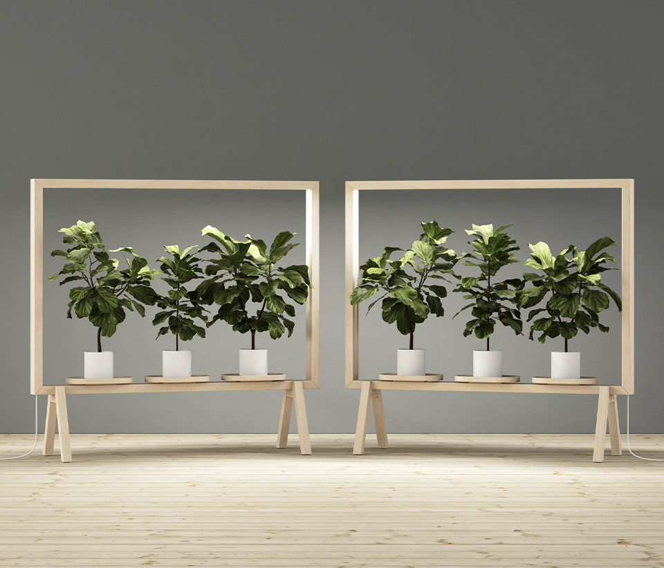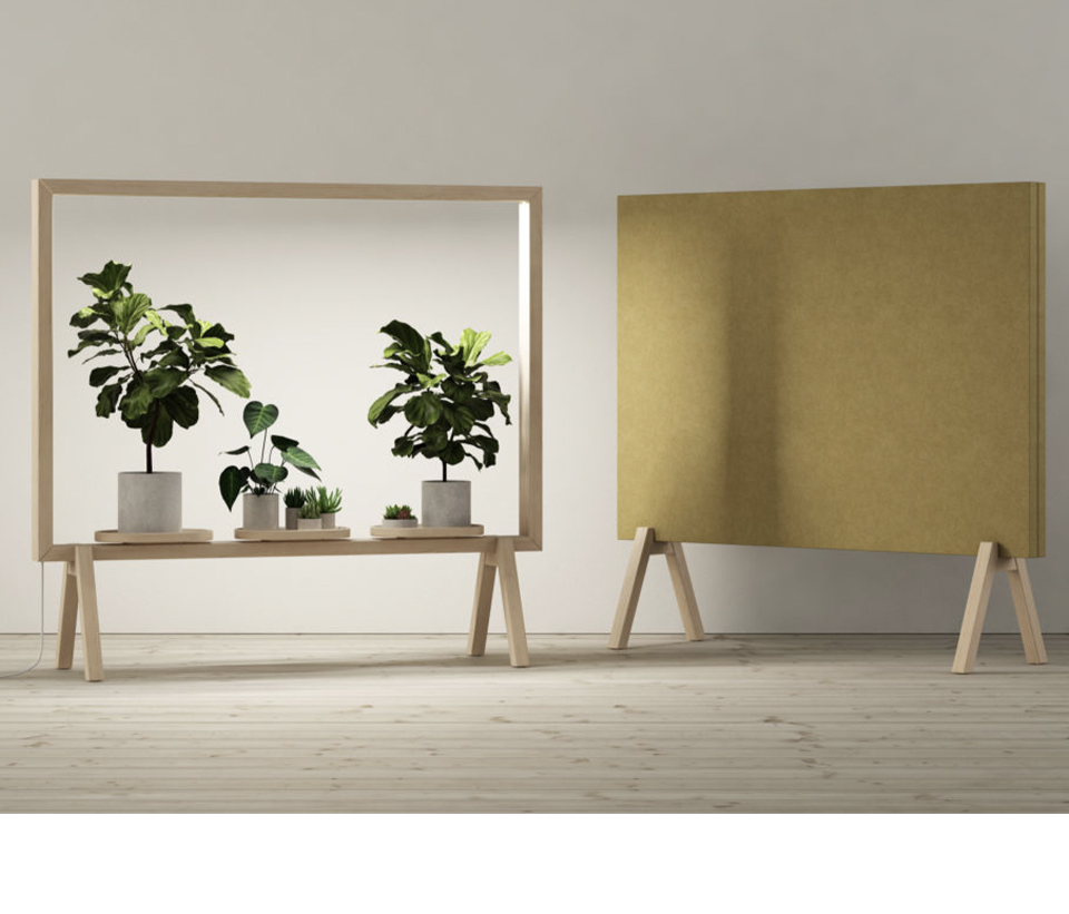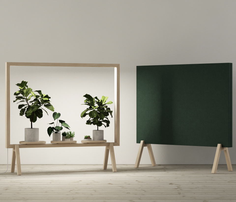 GreenFrame är en unik golvskärm med integrerad växtbelysning som för in naturen på kontoret.