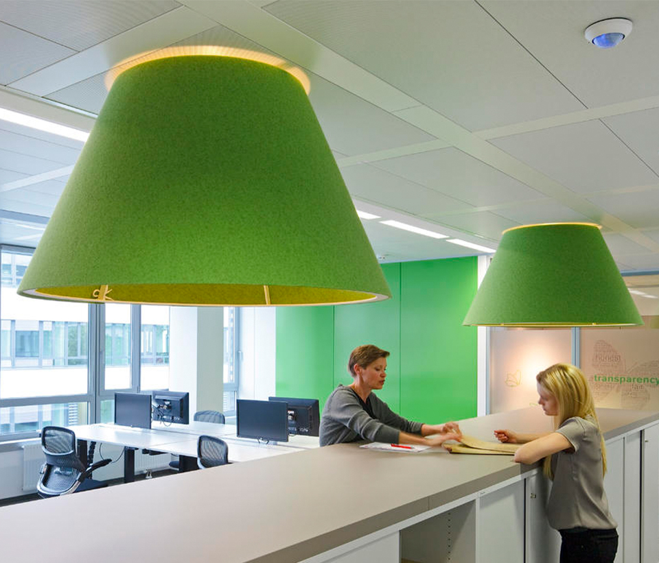Ljuddämpande lampa BuzziShade är ett perfekt komplement till alla kontor, väntrum eller restauranger är BuzziShade idealisk även för stora evenemang.