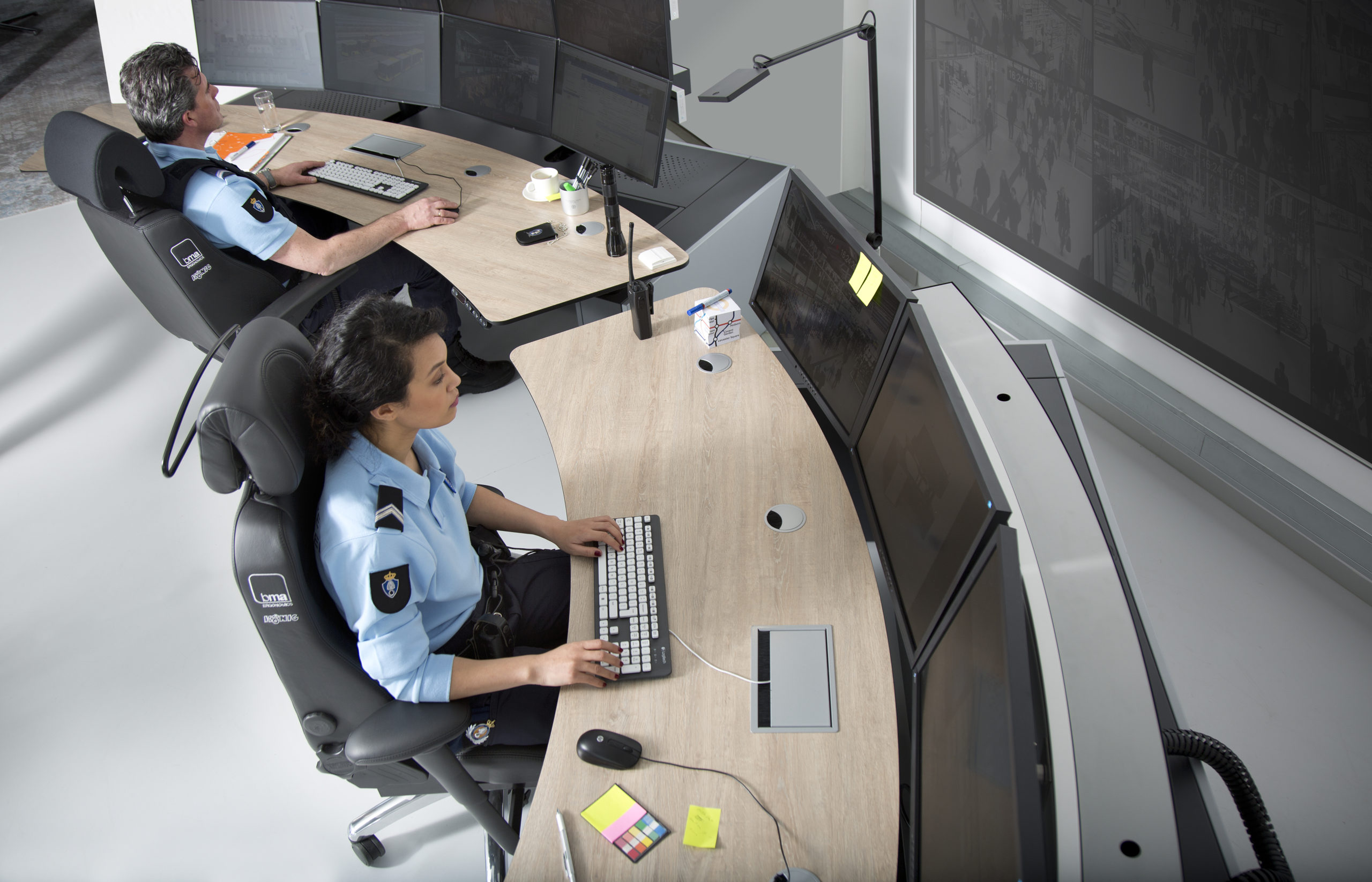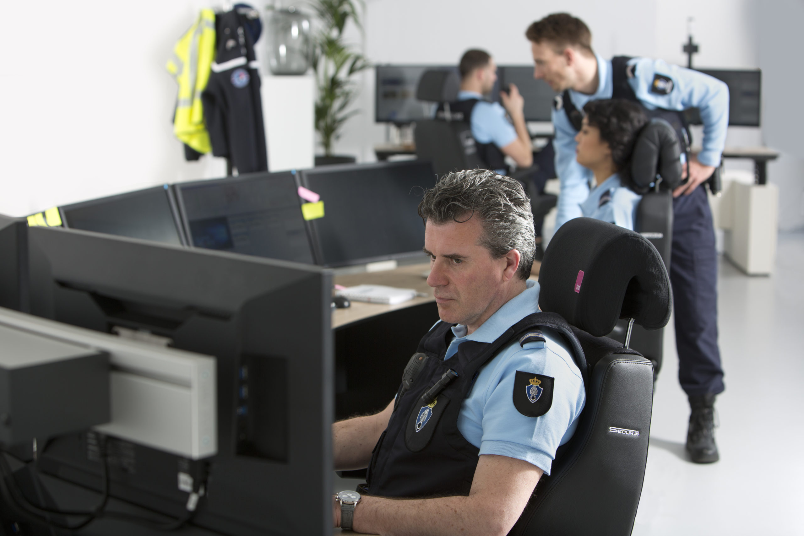 Extremt robusta konstruktion och hög komfort gör Secur24 Basic och Secur24 Exclusive optimala 24-7 stolar för observations- och övervakningsarbetsstationer, såsom: