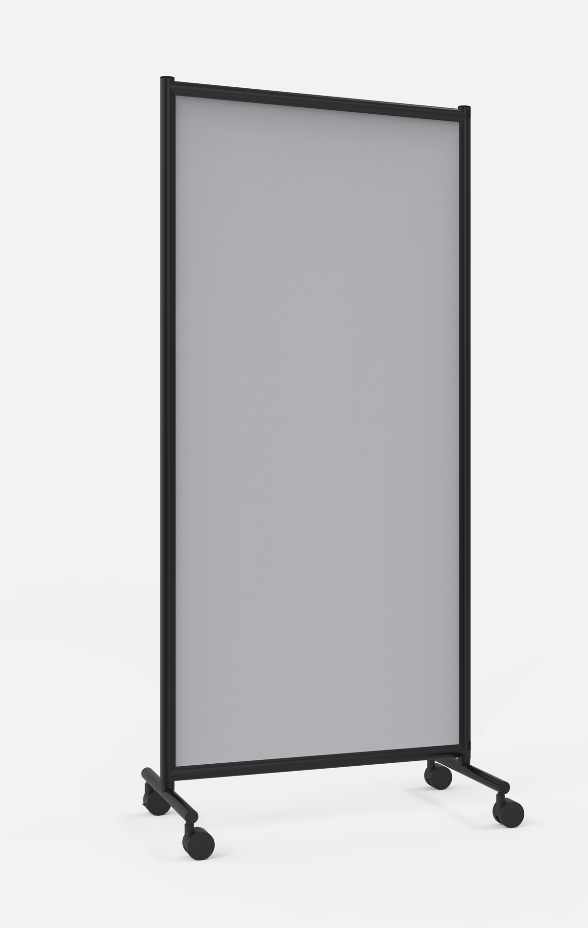 Skärmvägg och mobil anslagstavla i tre tygfärger och har en markerad svart ram som ger en karaktäristisk, enkel och tidlös känsla.