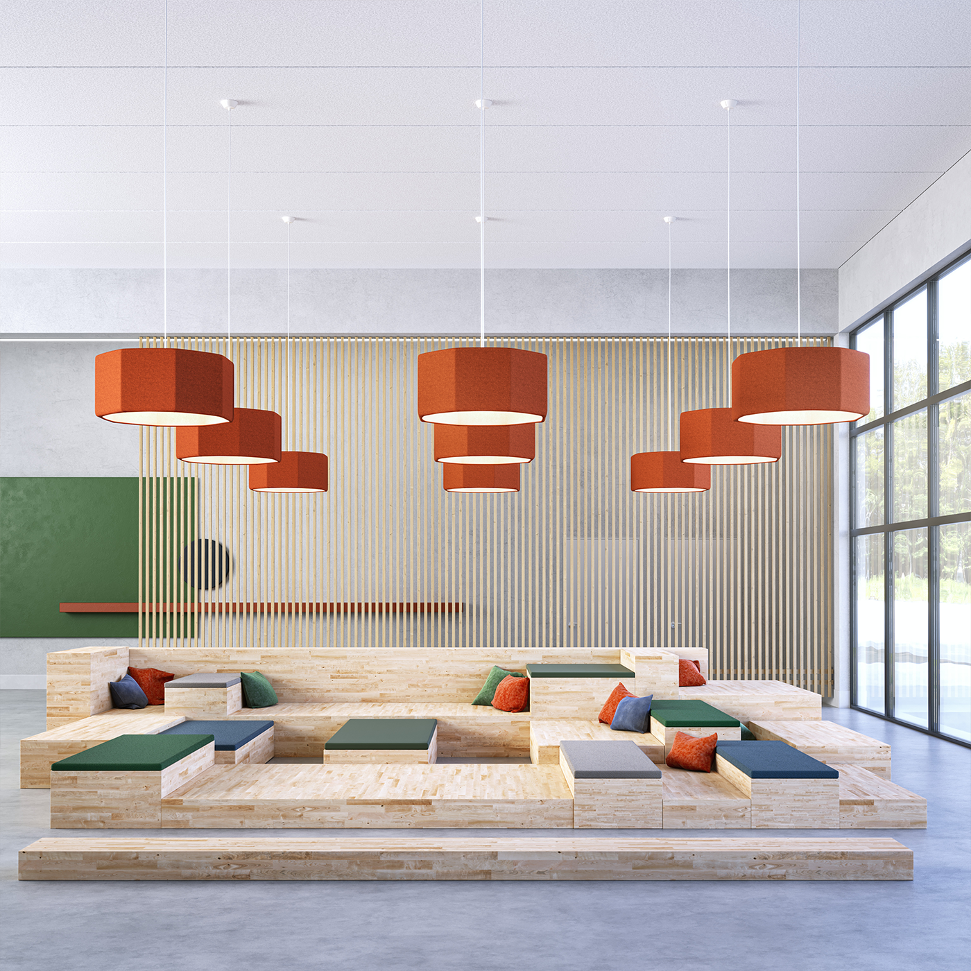 Utöver dess visuella attraktivitet har Soft Sound Octagon även en ljuddämpande funktion. Dess material och design hjälper till att absorbera och minska ljudnivån i rummet, vilket skapar en lugnare och mer behaglig miljö att vistas i. Detta är särskilt viktigt i offentliga, kommersiella och arbetsmiljöer där en tyst och fridfull atmosfär kan främja koncentration, produktivitet och välbefinnande.