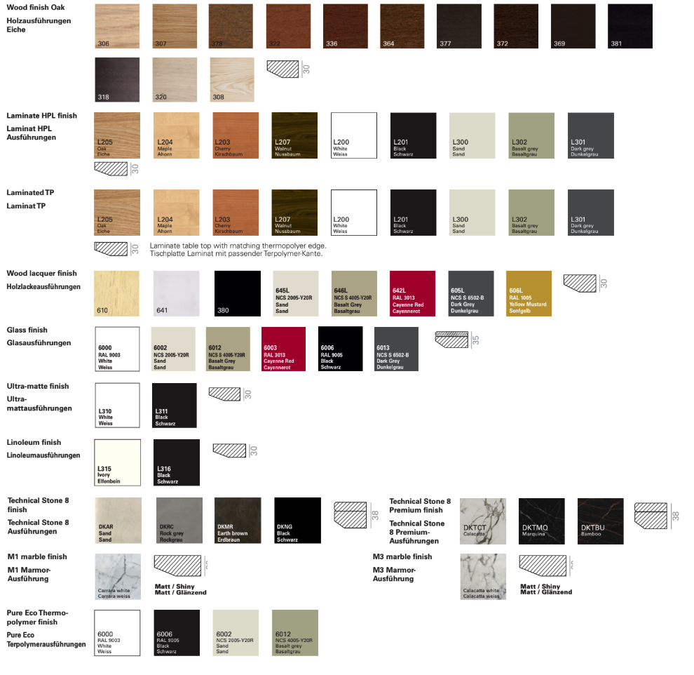 Bordet kommer i flera former – rektangulärt, rundat eller kvadratiskt – och finns i både fast och höjdjusterbar version, vilket gör det otroligt mångsidigt . Du väljer topp i fanér av ek, laminat, glas eller marmor, och kombinerar med olika underredsfinishar – allt för att möta estetiska och funktionella krav .