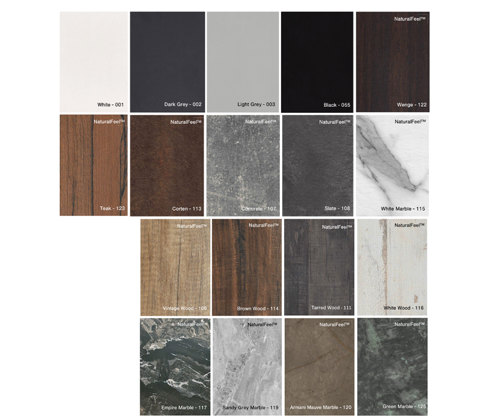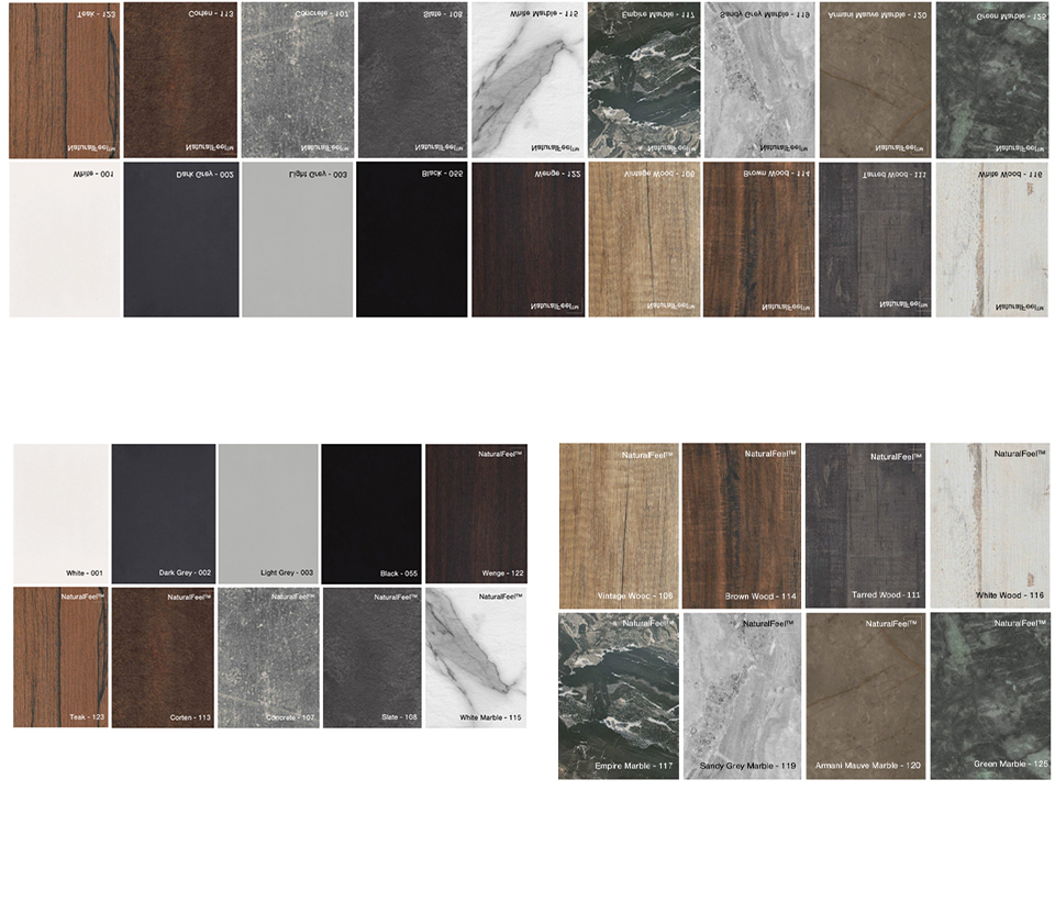Dessutom finns ytor i Smooth, NaturalFeel™ och högblank finish, där varje struktur matchar materialets visuella uttryck.