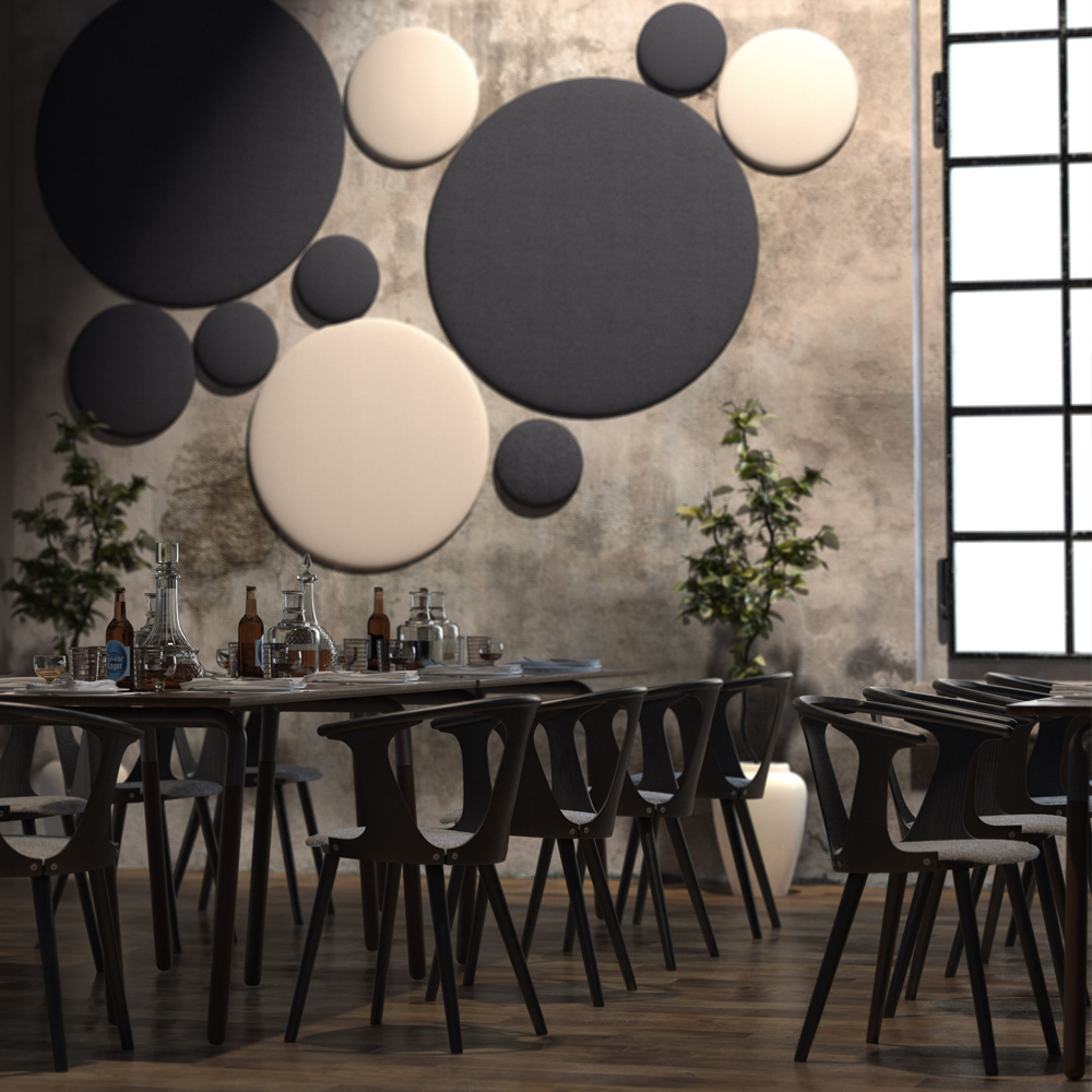 Väggabsorbenter Woolbubbles® är med sina eleganta former unika på marknaden.