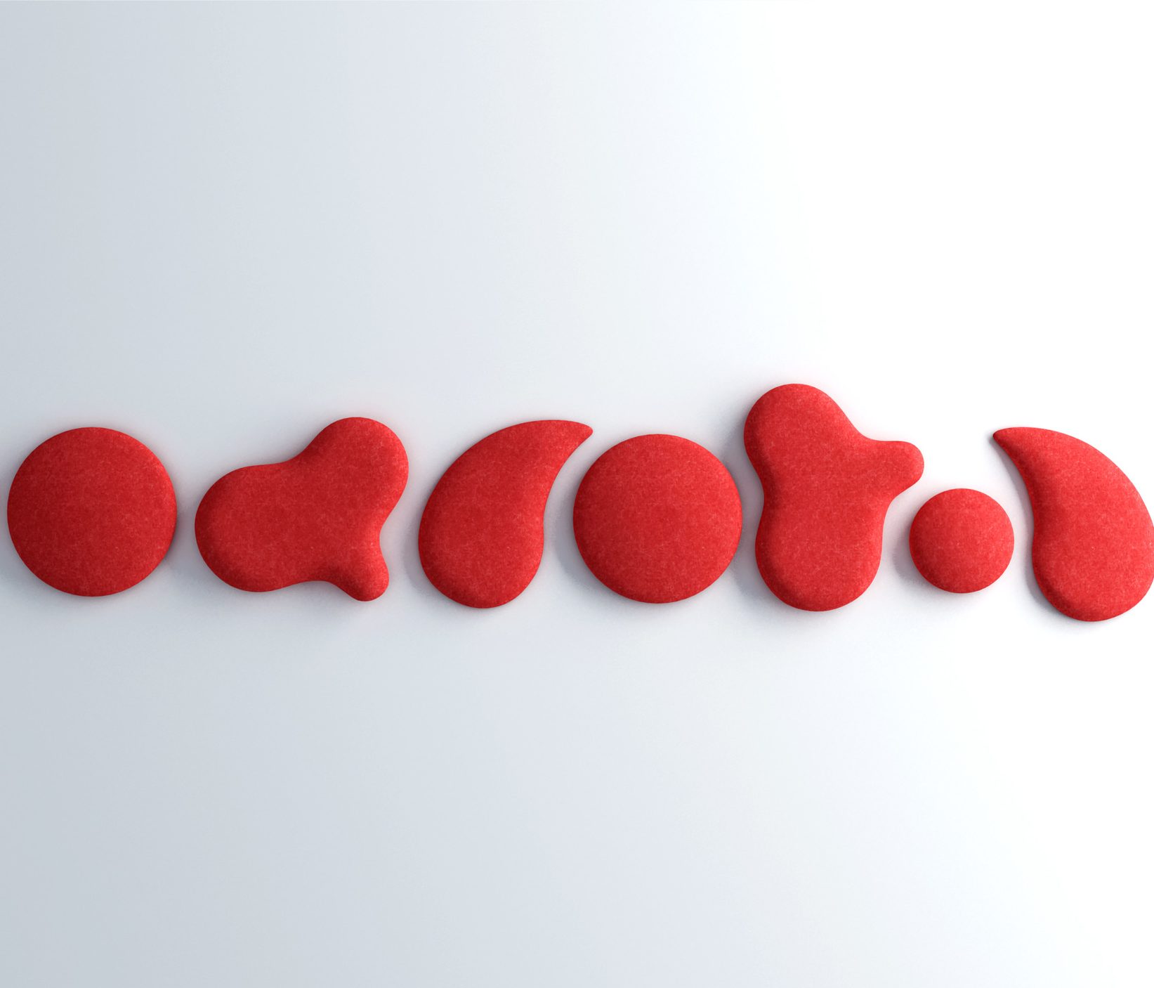Väggabsorbenterna Woolbubbles® finns i 9 grundformer som kan kombineras.